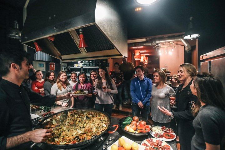 Your chef will begin by taking you on a tour of La Boqueria Market. In the mix of a bustling market atmosphere, he will collect and explain the fresh produce needed to make the paella. Afterwards, he will take you to a private kitchen to begin your cooking experience. You’ll then have the excitement of making beautiful tapas and an enormous, traditional paella all from scratch. You'll also learn to make your own Sangria, which you can enjoy through he class.